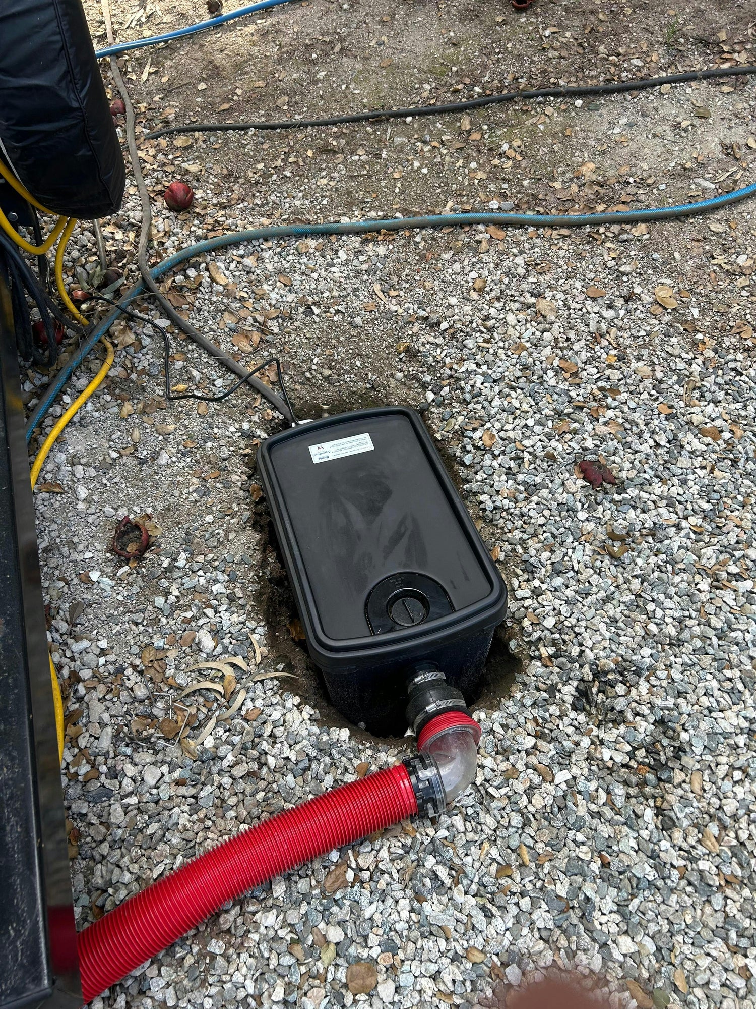 Living permanently in a travel trailer, Jay initially discharged greywater directly onto the property. Over time, this led to persistent puddles, foul odors, and excess moisture pooling around the trailer — making the area unpleasant and unsanitary.