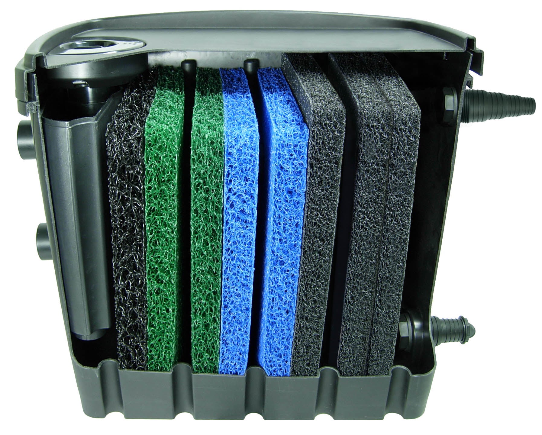 - Thanks to the Matala depth filtration, the unit is extremely efficient in progressive filtration and it can hold 10kg of solids without clogging the filter. (less frequent clean.)